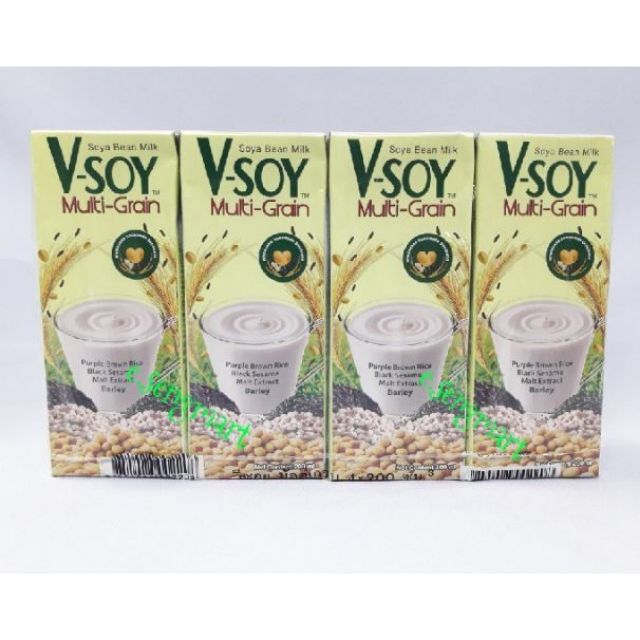 The amount recommended to give the lowering effect on the blood cholesterol is 25g of soy protein per day. Home dairy milk soy milk vsoy soymilk multi grain 300 ml. Deskripsi v soy multi grain vsoy multigrain susu soya 1000ml 1liter satuan. Dengan bahan bahan seperti kedelai fenugreek. Happy happy soy boy soy milk.